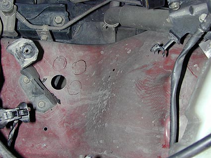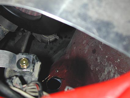 上の写真の、リザーバータンク横のスペースに穴を開けないと