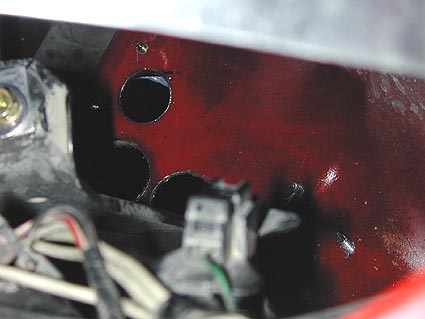 エアクリの前端が見えてます。で、下に3つ開けた穴の奥のほうの