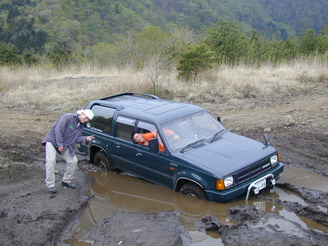 おとつさん!スタックしてるのに最高の笑顔!! 助手席では奥さんが... (-_-;)