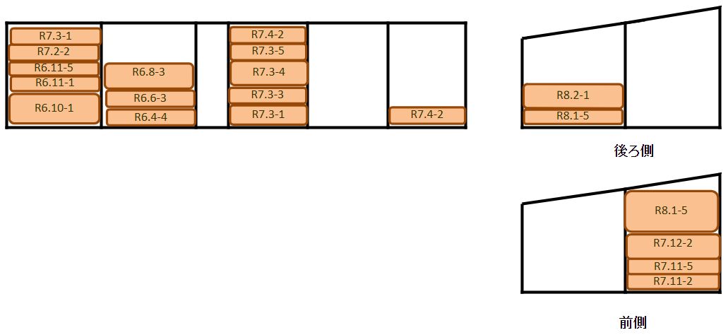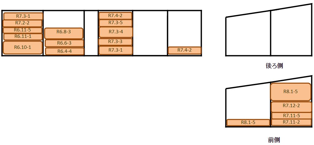 令和6年8月3回目の 薪棚の薪の積んだ順
