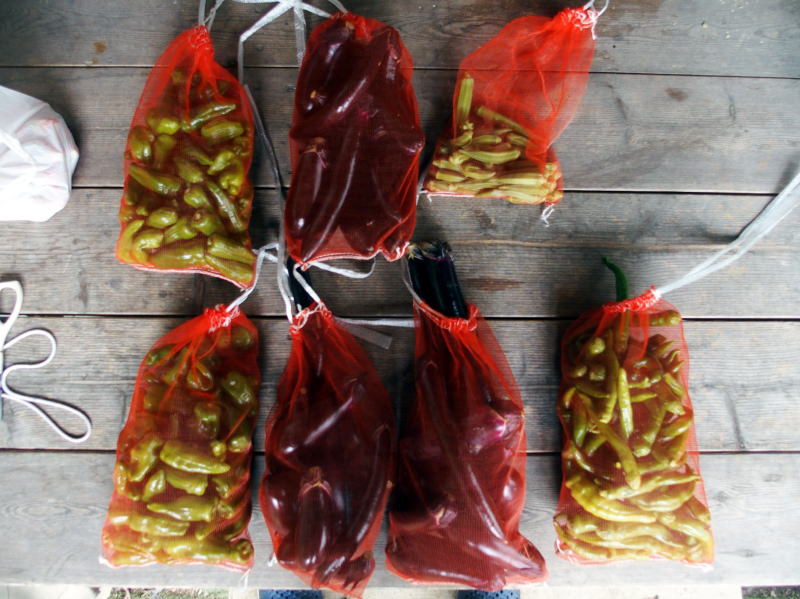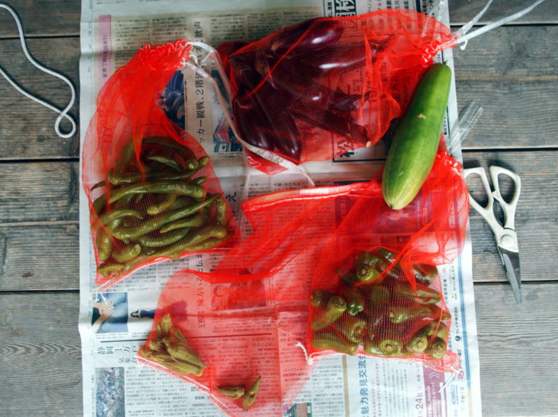 11:05 畑の収穫もしました。雨が良く降ったみたいなんで水やりはしませんでした。 ピーマンが少なくなってきてますが、ナスビがたくさん出来てました。万願寺も 程々に出来てました。 オクラは小さいのだけ採りました。 |