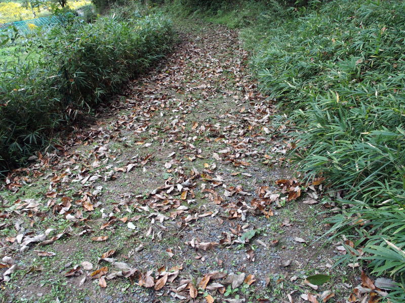 11:55 この通路も刈りましたが、刈ったのや枯葉はそのままです。 昼からはこの右側の笹が伸びてきてるのも刈りましょう! |