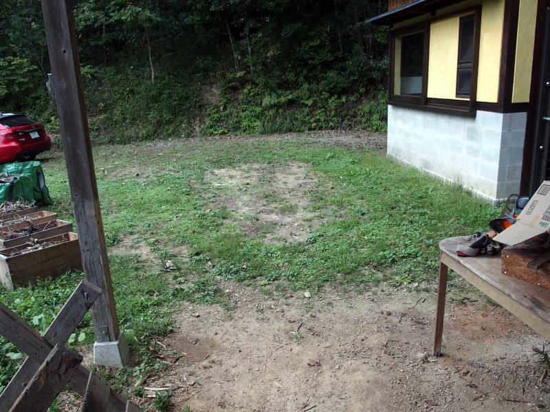 11:54 ここの段の草を刈りました。昼からはアテンザを留めてる辺も刈りましょう。 |