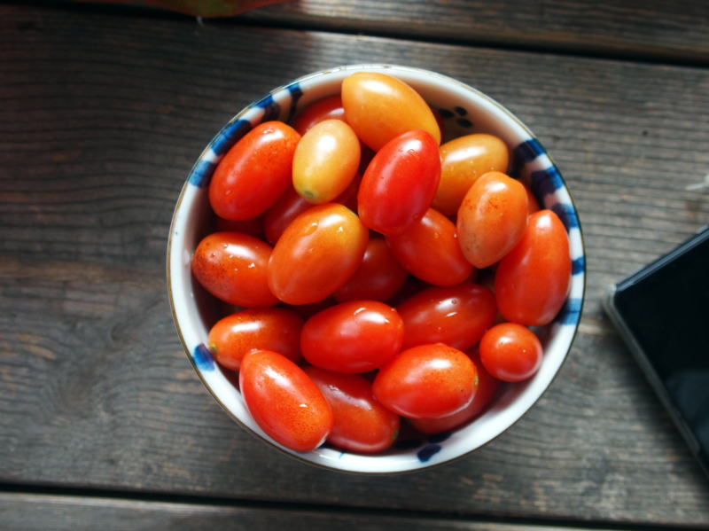 11:53 この前にちょっとショックな事が有って、もう野菜の収穫とかは どっちでも良いわ~ というような気になってたんですが、いやいや、 それはアカンやろう!という事で、畑に行って収穫してきました。 ミニトマト(アイコ)です。ちょっと食べましたが、これだけ出来てました! きれいです! 味もしっかりしてて美味しいんです!(*^^*) |