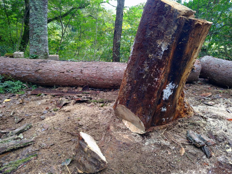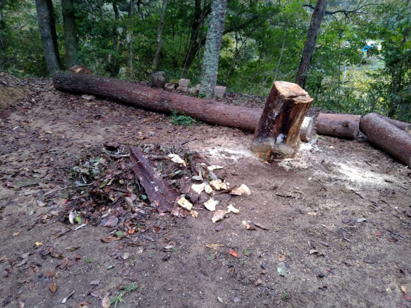 | 15:37 あの切り株を地際で切れたら、その上で焚火をしてやろうと思ってたんですが、 まあ、燃やすつもりの木くずとかは濡れてるし、そもそも切り株が切れてません。(^▽^;) もう良い時間なんで風呂を焚いて入りましょう~~ (*^^*) |