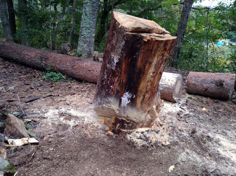 | 13:59 昼からは、急がないとは思いつつ、この切り株を切ってしまおうと思ったん ですが、地際の切り口の同じところを切り進んでいくのがなかなか難しくて(持ち手が 地面に当たってしまいます。)、斜めに切り落としていくことにしたんですが、なんか これも手間で、、、まあ、急ぐこともないか~ と。 ぼちぼちで良いですよ。(^▽^;) |