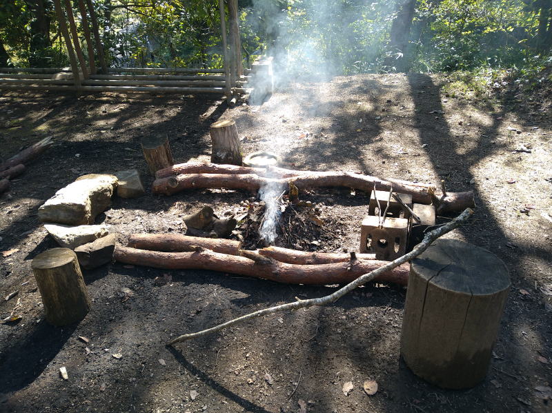 | 8:51 天気は良いです! それで、ファイアープレースをいつもの感じにセットしています。 ぎりぎり燃えるんじゃないかと思ってたら、、、雨が降ってきました~ (^▽^;) |