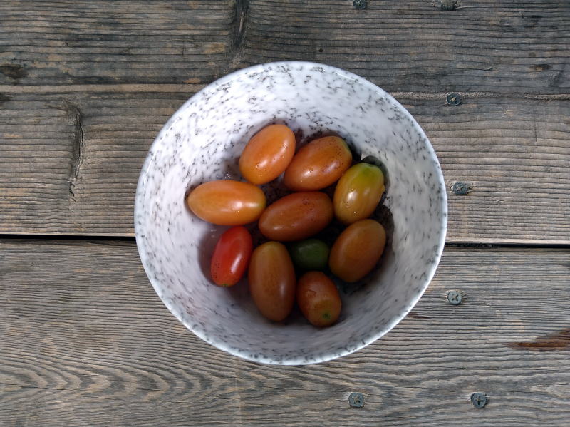 | 14:03 帰る日なんで収穫をしてました。ミニトマト(アイコ)です。 さすがに減りました~~ しかしいっぱい出来てくれましたよ~(*^^*) |