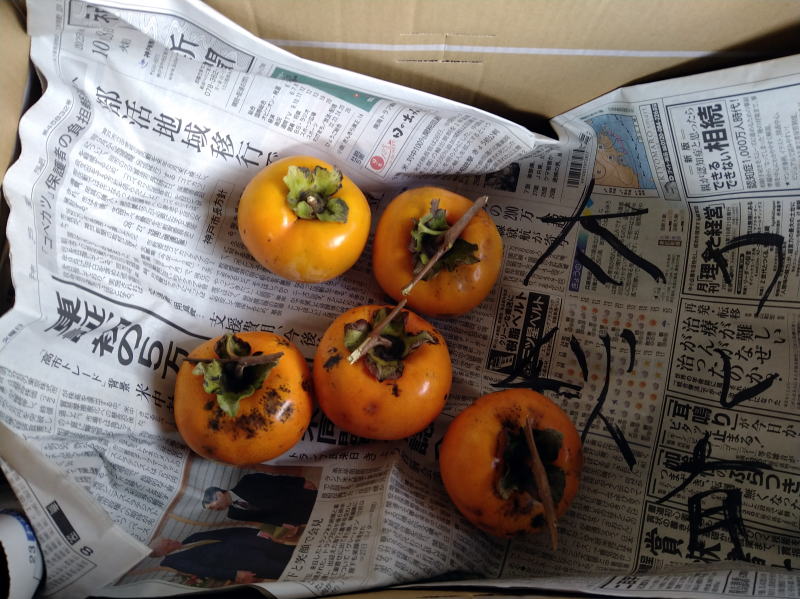| 14:03 太秋です! 5個のうち3個くらいは落としました。 下が地面なんで 入口の富有柿みたいに豪快には割れません。 太秋はこれで終了でした。 今年はけっこう出来てくれたんじゃないでしょうか? うれしいです!(*^^*) |