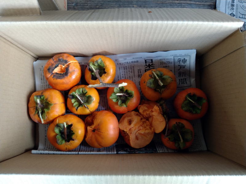 | 14:05 落として割れた富有柿です~ 11個ですね! 勿論持って帰りますよ~ これがまた美味しいんです!!(*^^*) |