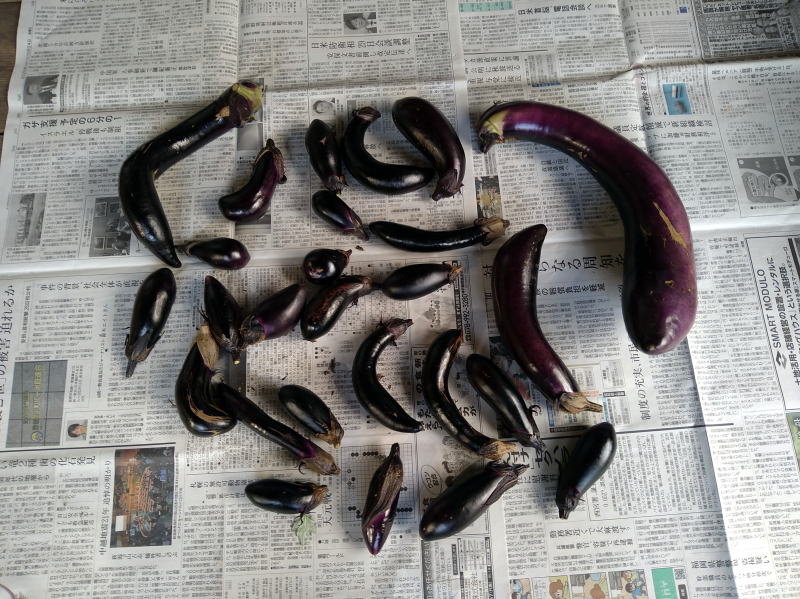 | 14:09 ナスビです! すごく小さいのも収穫しましたが、とんでもなく大きいのも ありました!! 前回の見落とし?と思いますけどでかいです!(^▽^;) |