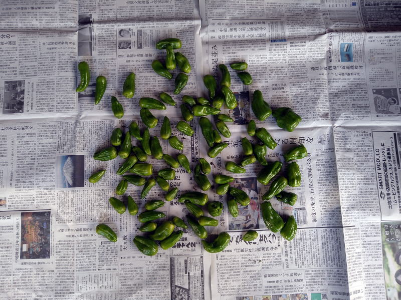 | 14:10 ピーマン、、、ほんまに小さいベビーサイズのも採ってます。 もう大きくならないようなんで。次回くらいで終わりかな~ |
