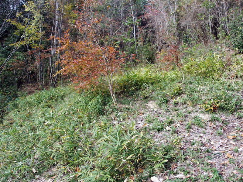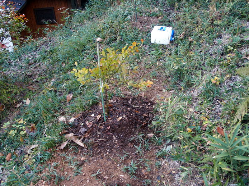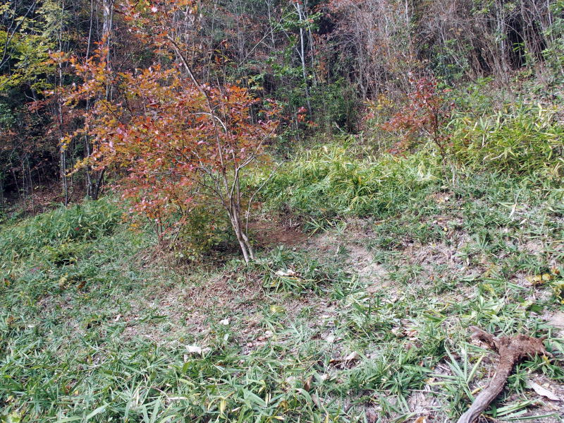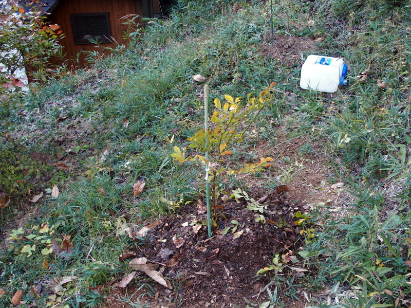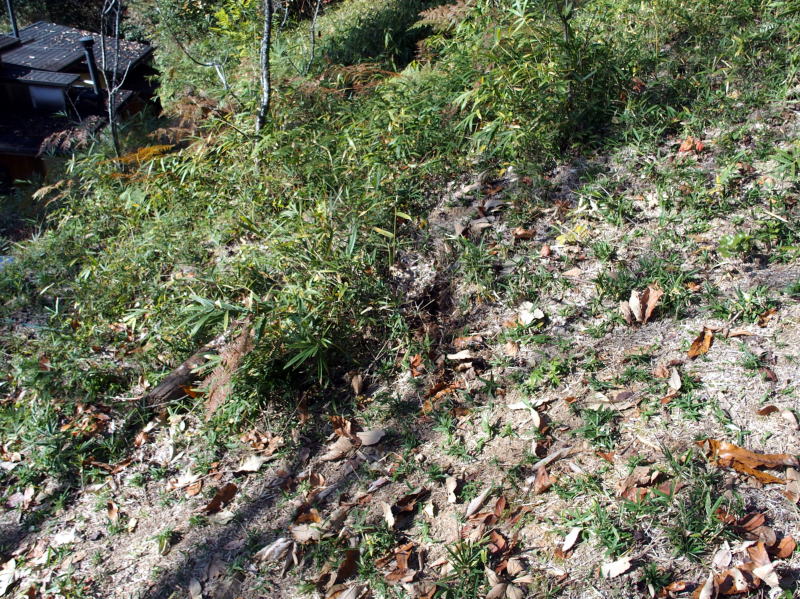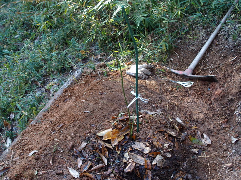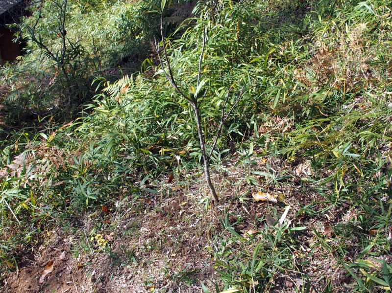 | 11:58 株元の周りの笹を刈ってマルチに敷いておきました。 ( 一番上のやつの所は忘れてました。(^▽^;) ) 今度また刈り払い機で回りをグワーーーっと刈ってやりましょう! |