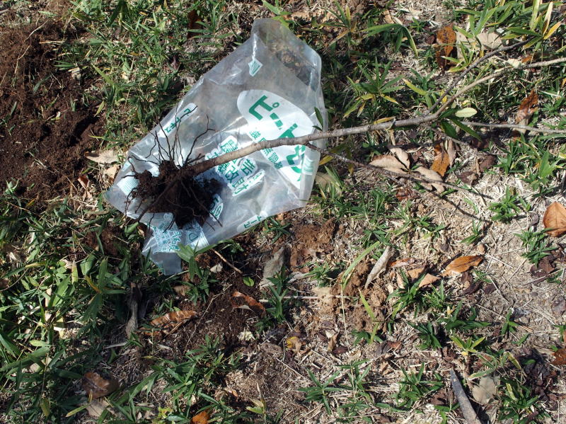 | 14:28 今回は土曜から月曜の2泊3日です。金曜は仕事をしました。(^▽^;) 土曜は昼過ぎに山に着きました。来るときに家の近くのコイン精米所で米 糠をいっぱいもらってきました。いつもいっぱい貯まっててありがたいです!(*^^*) 山に着いてすぐに昼ご飯(パンです。)を食べて作業開始しています。今日は もう土曜なんで、あんまりのんびりはしてられないんで初日からがんばってますよ。 このサッカー(と言うらしいです。根元から出るのをシュート、根元から少し離れた 所から出る新梢はサッカーと言うそうです。)、2本出てるんですが、位置からして 1号(メインデイトー)のサッカーで間違いないと思います。掘り上げるときにスコップ を入れたら地下茎で繋がってるんで分かります。今回ブルーベリーを増やすのは 1号(メインデイトー)と4号(名前はわからない)にします。立派な実が生るんで。 2号ちゃんは復活途上なんで、今回は対象外となっています。(^▽^;) |