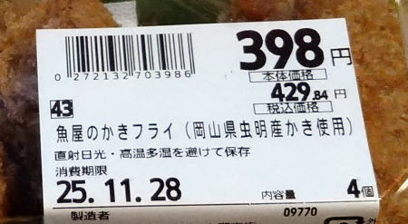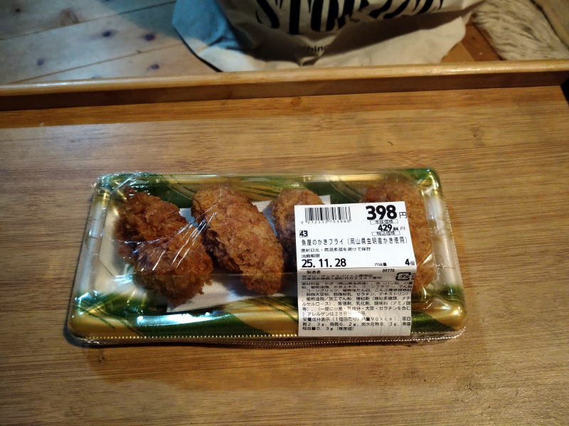 ![]() 19:03 風呂から上がって、晩ご飯です。 これは来るときにマックスで見つけて買いました。 岡山県虫明産の牡蠣を使った牡蠣フライです!今年は瀬戸内の牡蠣は9割くらいが 死んでしまってるそうで、虫明はどうかは知らないんですが、多分同じではないかと 思います。それで、いっさんも言ってましたが、これは去年産の冷凍もんだろうと。 そんなことも含めて、値段が高いのか安いのかは分かりませんが、食べれることは 幸せです!ありがたくいただきましょう~~ (*^^*) |