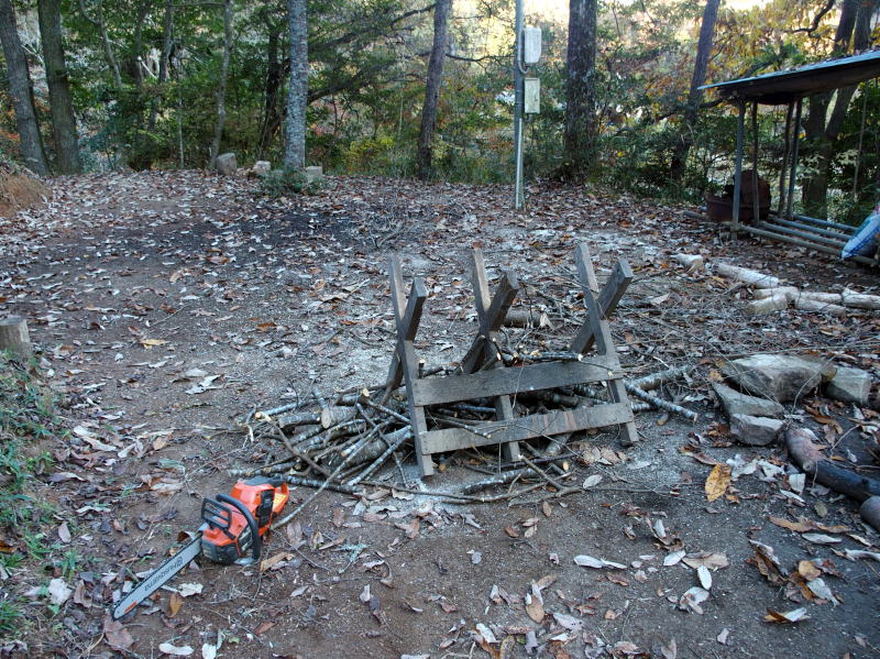 | 16:15 チェーンソーでカットしました。これを積んだらスッキリするんですが、 もう良い時間なんで作業はここまでにしました。初日から良く頑張りました!(*^^*) |
