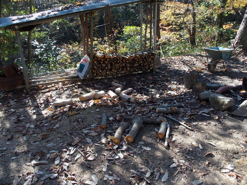 | 11:27 きのうカットしてたのを薪棚に積みました。 またちょっと太めなのが出ましたが、前からのと一緒に転がしておきました。 近いうちに割って積みます。 |