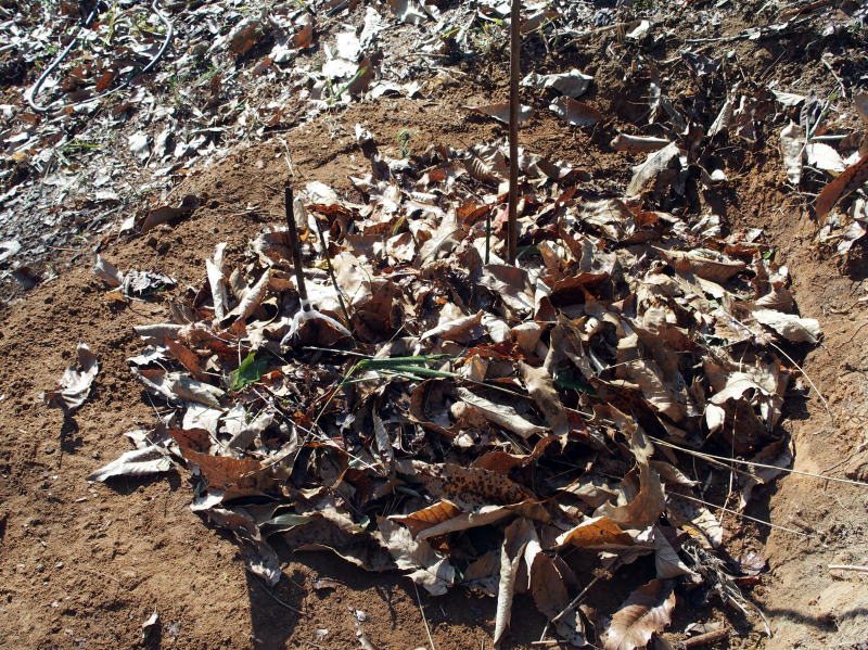 | 13:50 枯葉でマルチをしておきました。 これで良いでしょう! (*^^*) この後、風呂を熱めに焚いて入りました~ 最高に気持ち良かったです! |