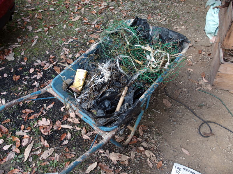 | 15:08 その前に、昼からは忘れないうちに畑の片づけをやってました。ピーマンや ナスビ、万願寺、ミニトマトも良く頑張ってくれましたが、霜に当たって終了しました。 それらを抜いて、支柱を回収して、黒マルチ、マルチ押さえも回収しました。 けっこう時間かかりますよ~ でもこれをやってスッキリしました!(*^^*) |