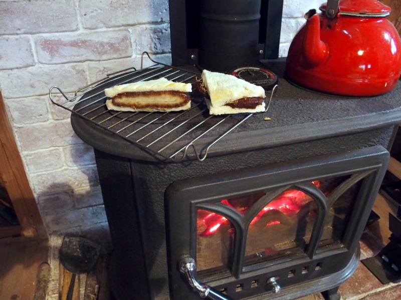 | 8:51 中では毎度毎度の カツサンド on the stovetop です。(*^^*) |