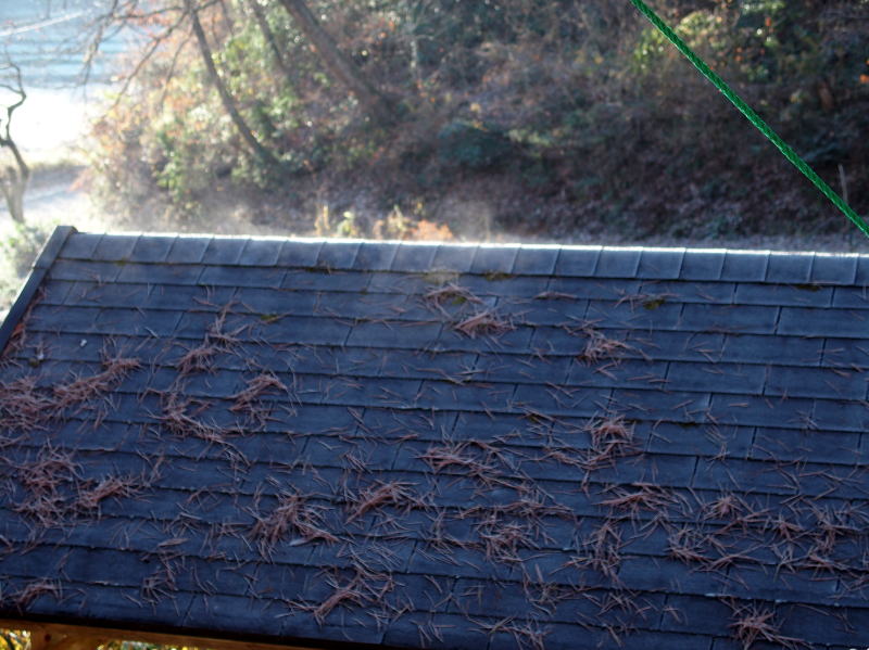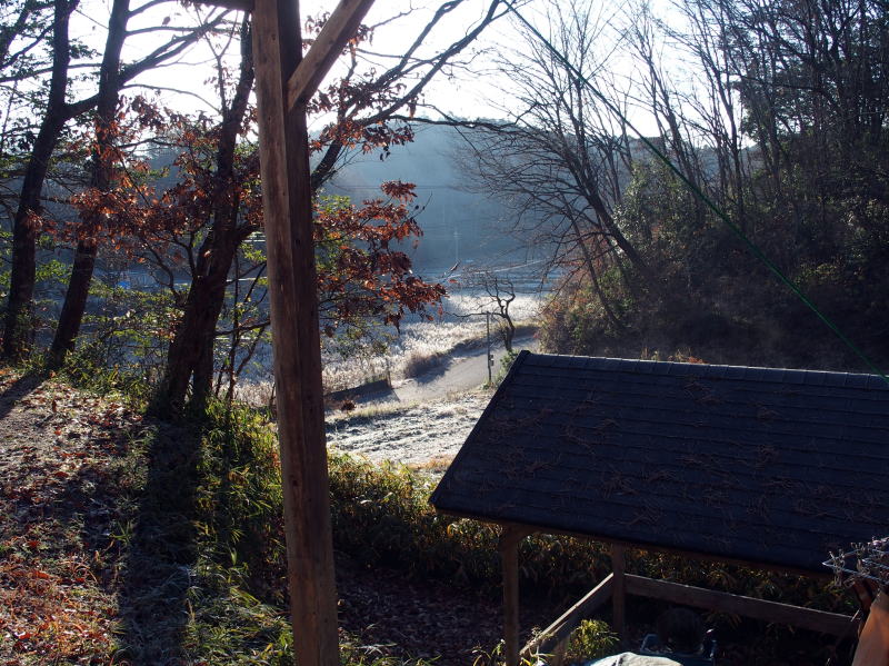 | 8:24 朝日がすごいんで井戸の屋根から湯気が立ってます。 これも毎度のことですが、太陽のエネルギーの凄さがよく分かりますね! |