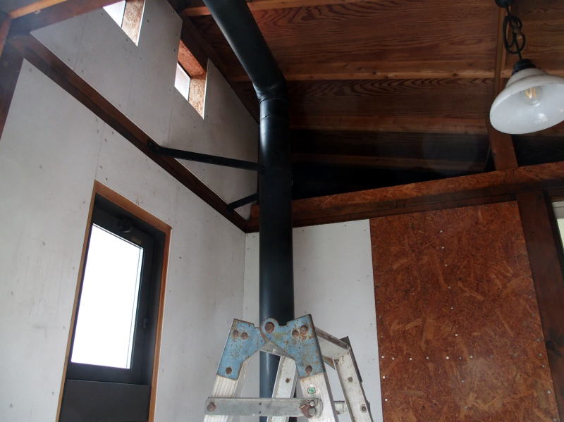 | 13:01 外部の縦の部分の煤を落として、T 曲げの方向を間違わないように取り 付けました!前回はここで間違ってましたから、十分注意してやりましたよ。(*^^*) ここまで出来たんで、昼ごはんにしました。 まあ、チャチャっとです。 |