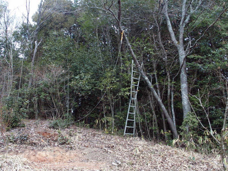 | 12:04 梯子掛けてワイヤーをかけれました! 柿をとるときの棒で上手く 上の方に上げれました。 |