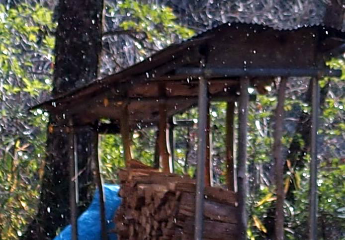 | 13:22 また風呂の焚きもんが出来ました! しばらくはここで乾かしましょう。 それと、昼からはチルホールを片付けて、バッテリーも充電して幹を片付けたり しようと思ってたんですが、なんか強い風が吹き始めて嵐みたいになってきたんで 作業はやめて中にいました。それで、天気予報の通りの感じだったんで、明日 (日曜)に帰ることにしました。無理は禁物です!一番あかんのは”蛮勇”です! |