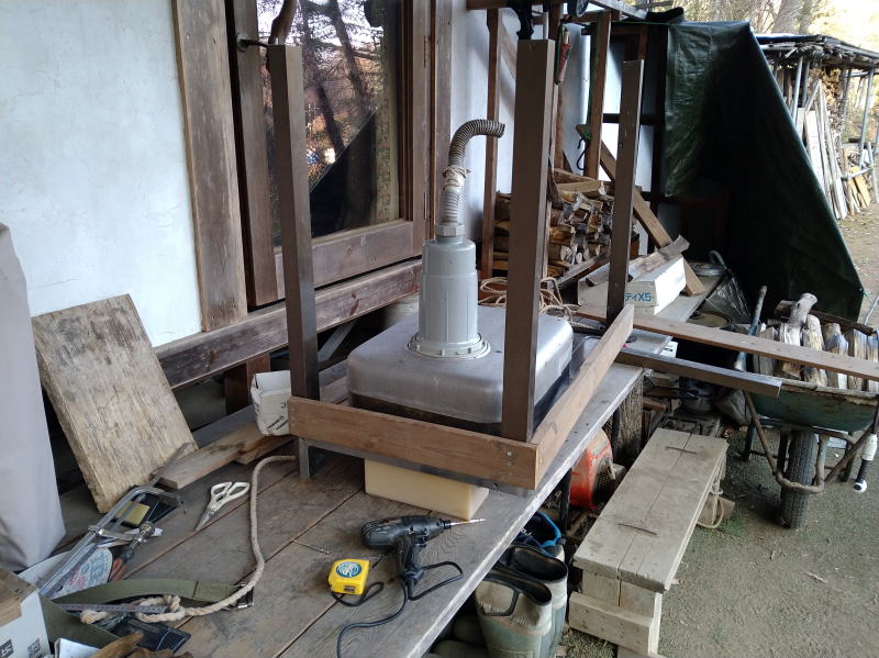 | 11:50 野外用の流し台の木部がダメになってしまったので作ります! もう昼前ですけど、、、まあ (^▽^;) |