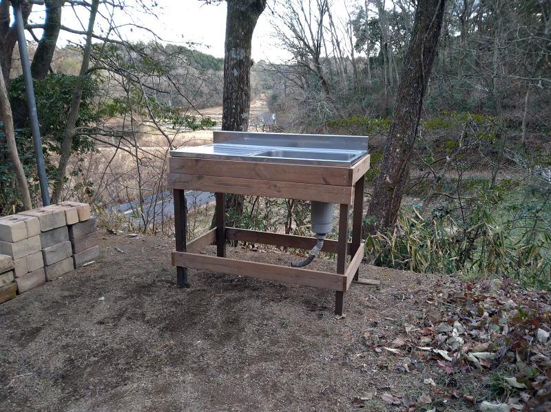 | あとは排水ホースをセットすれば完了です! 排水は、洗剤も使わないし 食べ物や食器類を水で洗うだけなんで、そのまま流して地中に浸透させます。 高さを少し高くしたんで作業も楽になると思いますよ~ 楽しみですね!(*^^*) |