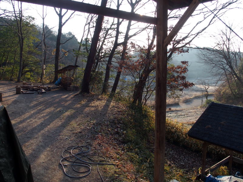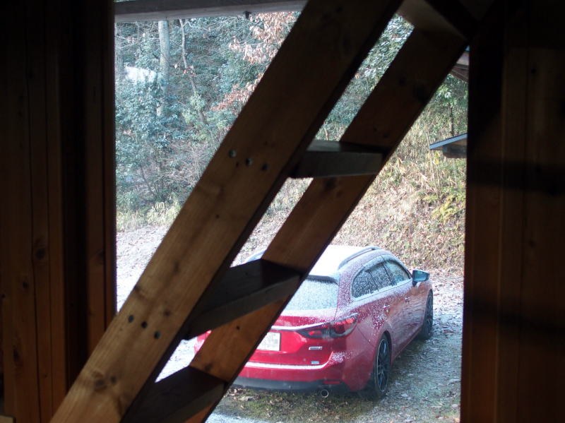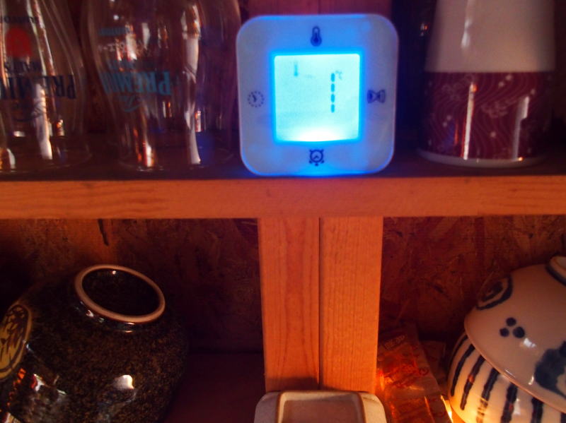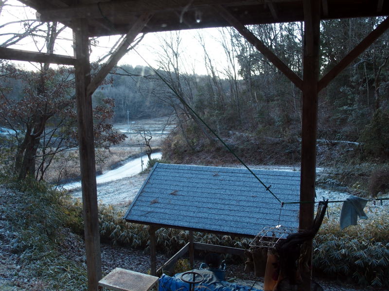 | 8:05 中から写真撮ってます。(^▽^;) これは絶対寒いですよ! それで、、 もう一回ロフトに上がって布団に入ってました。 布団の中は温いんで。 で、さすがに8:45 に下りてきたんですが、室温見てみたら0℃ でした。。。 |