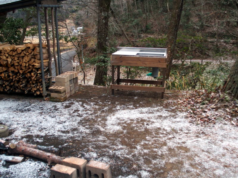 | 13:07 雪が止んだんで作業やってました。 足が4本付きました。 ここからはシンクと離してやりましょう。 |