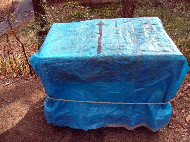 | 16:38 定位置に持ってきました。しっかり出来てるんでグラグラとかはしませんよ。 ただ、地面が水平とか出てないんで(当たり前ですけど)、適当な板をかませてます。 |